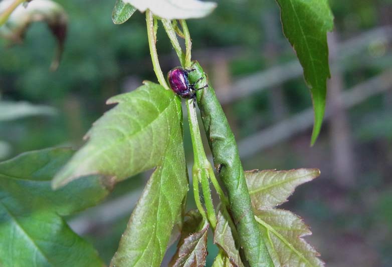 若い枝をかじって折り、しおれた葉を何枚か合わせて巻く。