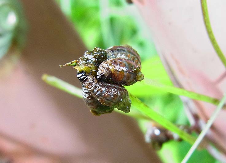 孵化した幼虫は糞を身にまとってカモフラージュする。。