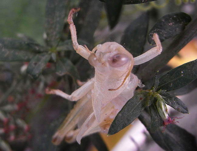 <ツチイナゴの幼虫と脱皮殻>