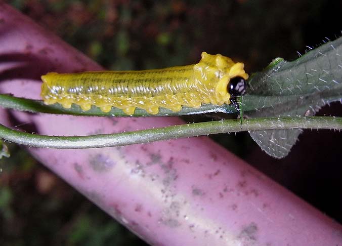いもむし型のハチの幼虫は、主に葉を食草とする。