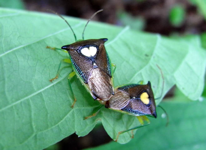 交尾 ハートが白い方がメス、黄色い方がオス