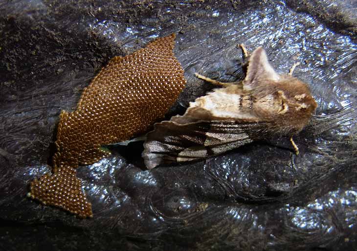 産卵。このメスの翅は片方が縮れている。