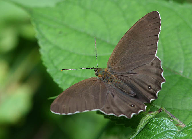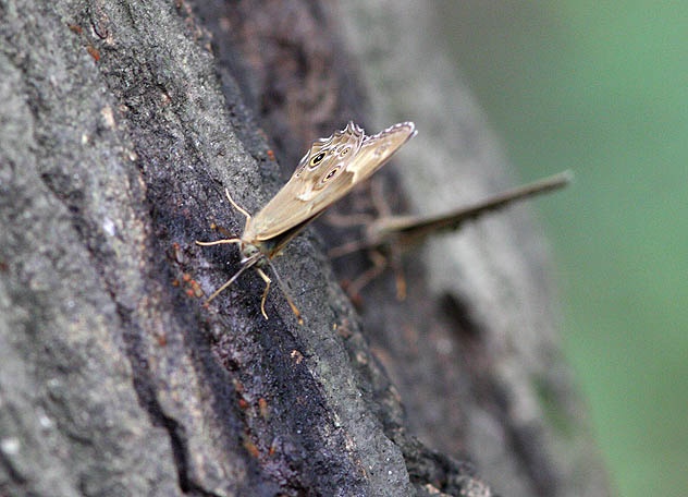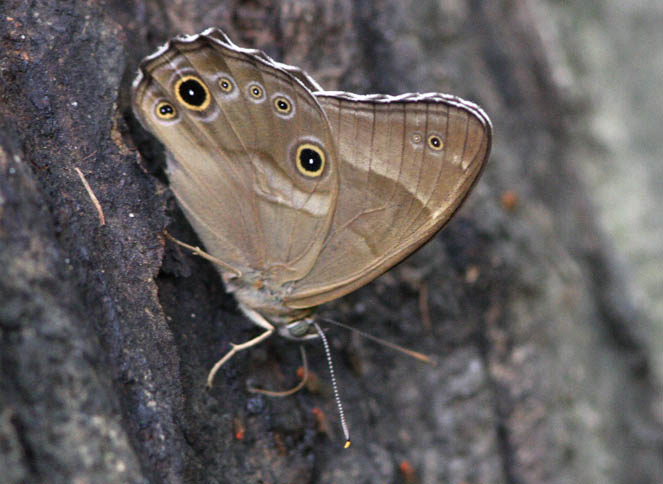 樹液を吸うヒカゲチョウ(ヒメジャノメや仲間のヒカゲチョウを追って位置を取る)
