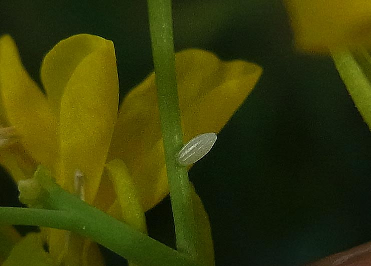 アブラナ・ムラサキハナナに産み付けられた卵